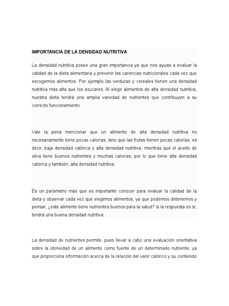 Densidad De Nutrientes En El Desarrollo De Las Guias Alimentarias