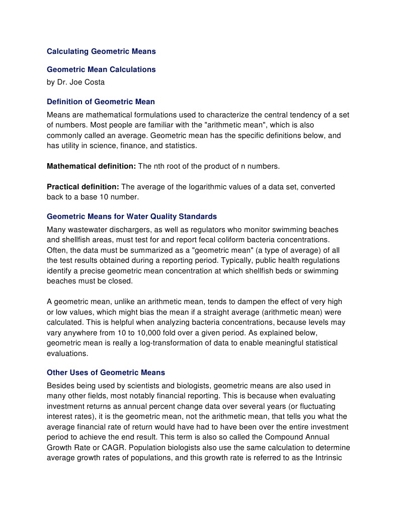 Geometric Mean Calculator Definition Examples