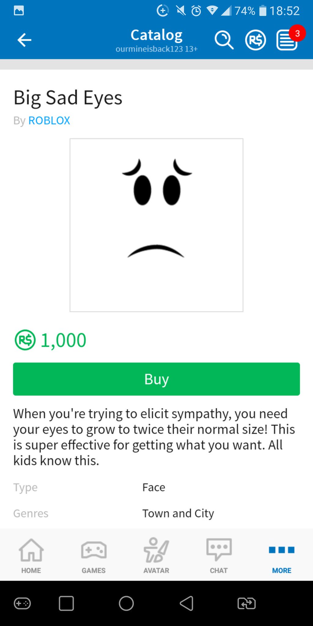Buying The Big Sad Eyes On Roblox Youtube
